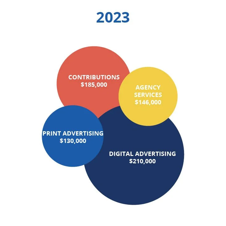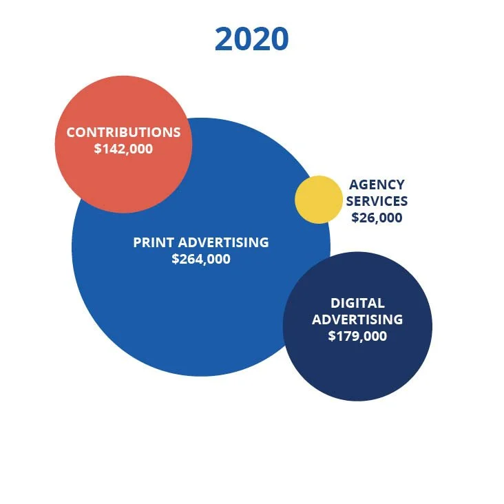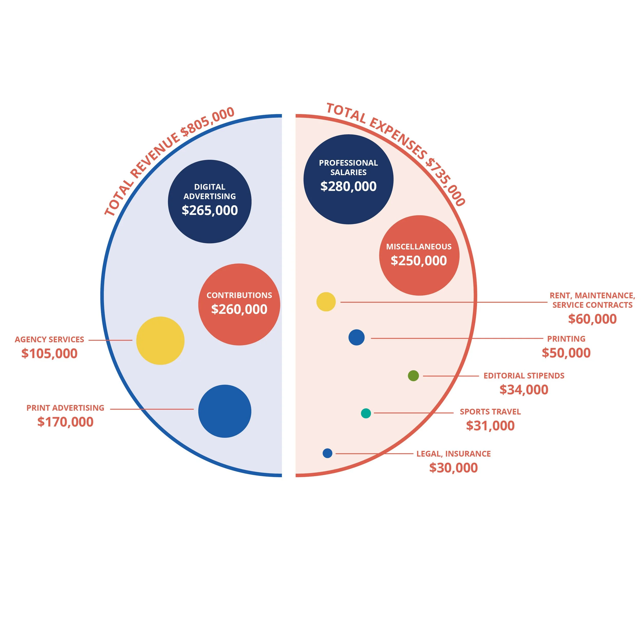 As you can see below the revenue side of our organization is healthy. Our overall revenue and expenses have stabilized over the last eight years (after eight previous years of steady revenue declines due to print advertising losses), primarily due to the growth of donor revenue and strong local sales efforts. We also developed agency services and wrote, published and sold Coach K: The King of Cameron to help support the bottom line. We’ve held expenses in line with revenue every year since 2009 enabling us to continue break-even operations.